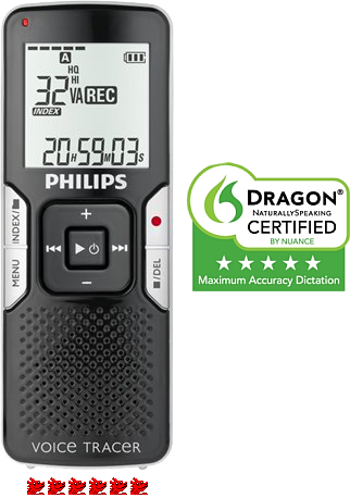 philps-bigThe Philips 660 Digital Voice Tracer is Nuance certified rated, stylish and practical way to organize your life. A one-gig memory, a handy alarm function and a free lapel microphone are all you need. Record notes and thoughts, and play back your favourite music. Whether used for business or pleasure, the Philips 660 Digital Voice Tracer is practical - and fun.
